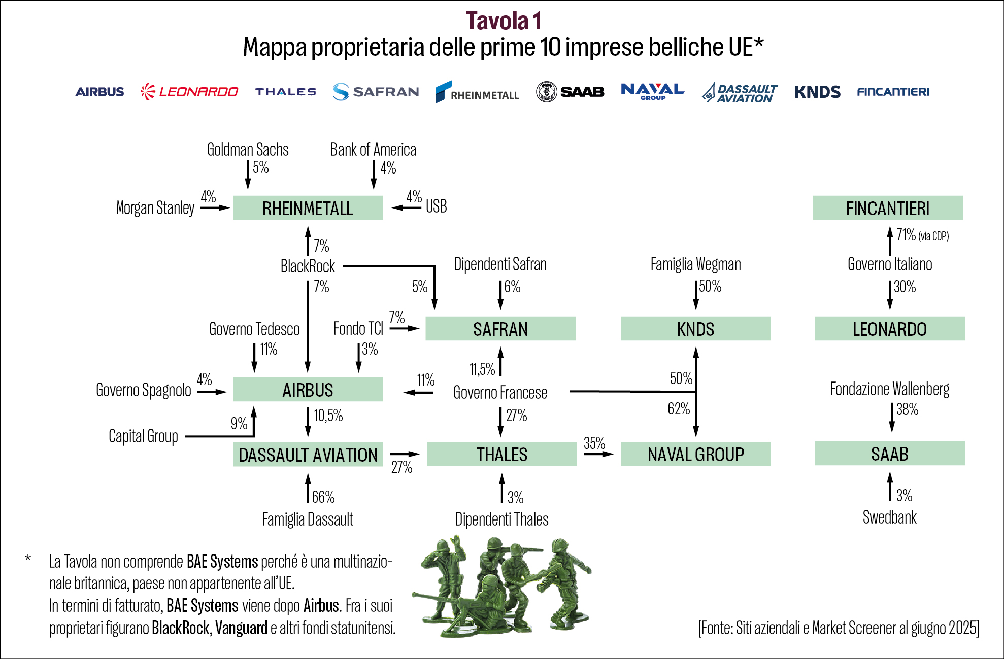 Di particolare utilità didattica le seguenti tavole pubblicate come file separati: tabellone di sintesi, mappa proprietaria delle prime 10 industrie europee di armi, mappa delle plutocrazie.
